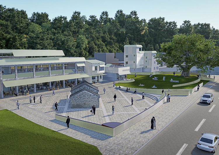 榕下聽音(千年古榕驛站)是由建筑師劉可南打造的“東坡樂事”主題驛站。設計在千年古榕下的這塊歷史悠久而雞犬相聞的場地上展開,將場地上斷裂的各種元素和空間關系修補再次鏈接:通過弧線景觀墻將古榕樹和村口老大門調和成村口景觀系統;用輕鋼挑檐把古榕邊三個小樓連成一個整體,成為景觀系統的主要界面;再為這三個小樓量體裁衣,置入新的功能,助力它成為老社區的活力中心,也成為在地村民和游客共娛的空間舞臺——古榕的年輪藏著歲月的故事,新置的功能載著當下的煙火,終成了以聲傳心、以景會友的知音之地。