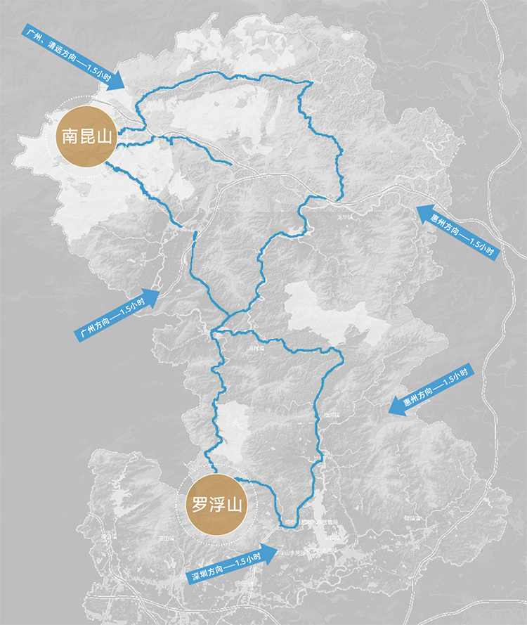 南昆山與羅浮山,這兩座森林覆蓋率超92%、藏有78處溫泉眼與200余處文化遺跡的生態雙子星,橫亙于粵港澳大灣區的文化腹地。在它們之間,一條全長218公里的“最美旅游公路”聯通兩山,呈“8字環狀”。它將被建設成為連接南昆山與羅浮山的紐帶,更好地輻射沿線鄉鎮和經濟節點。目前,“環兩山建筑藝術計劃”首批項目——“東坡樂事”方案公布,即將呈現。