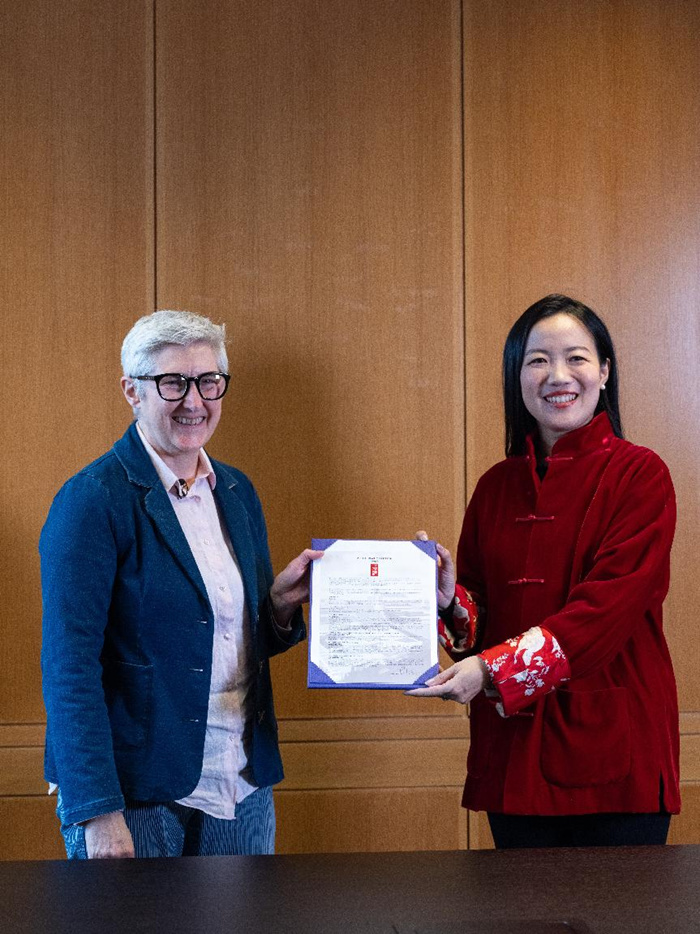 卡羅琳·布朗(左)與朱瑋琦(右)在簽約現場