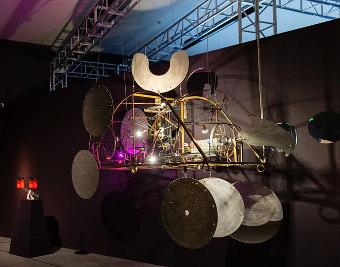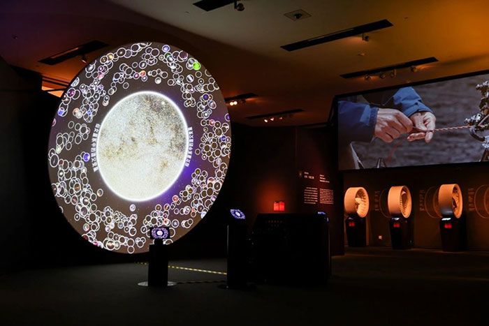 展覽分為“儀器和技術:繪制宇宙”“大數據的星空”“可持續的太空”“未來:行星之旅”四個部分,把科學探索和藝術詮釋融為一體,由科學家與藝術家聯合,通過古代文物、現代動態雕塑、3D影像、交互裝置、沉浸式體驗、概念設計等多元作品形態,以藝術化的方式呈現從宇宙中采集的抽象數據,構建了一次“科學+藝術+歷史”的跨界對話。