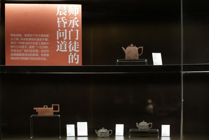 “非遺新生——行進中的紫砂新青年”是此次展覽中的重要版塊,由程輝、范永良、葛軍、李遊宇、呂俊杰、王亞平六位紫砂藝術名家及其傳承人的代表作品,拉開這一單元的展陳。