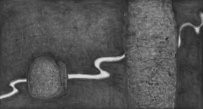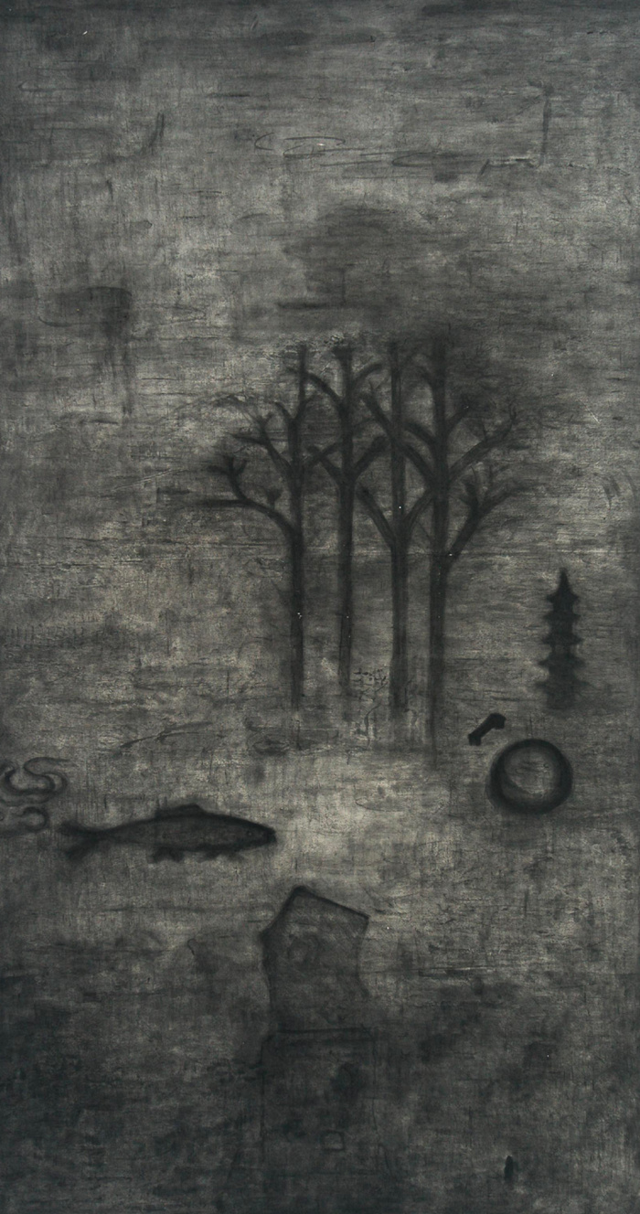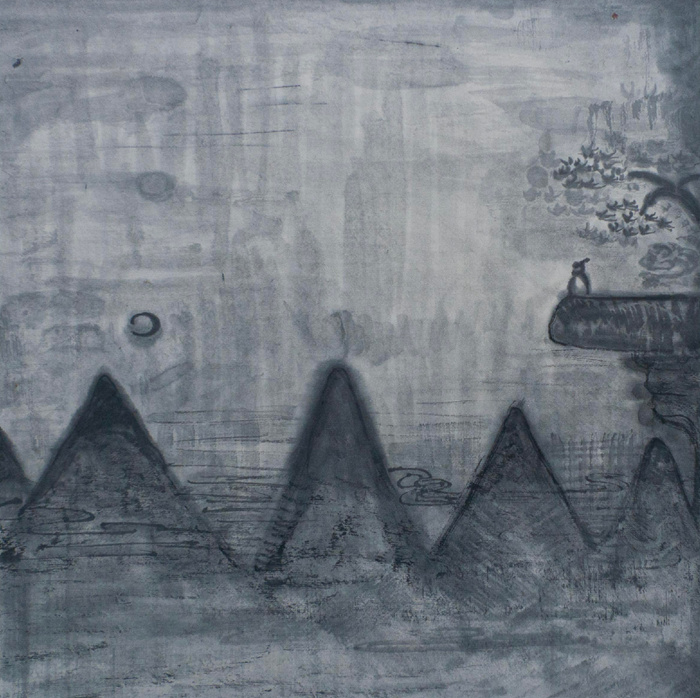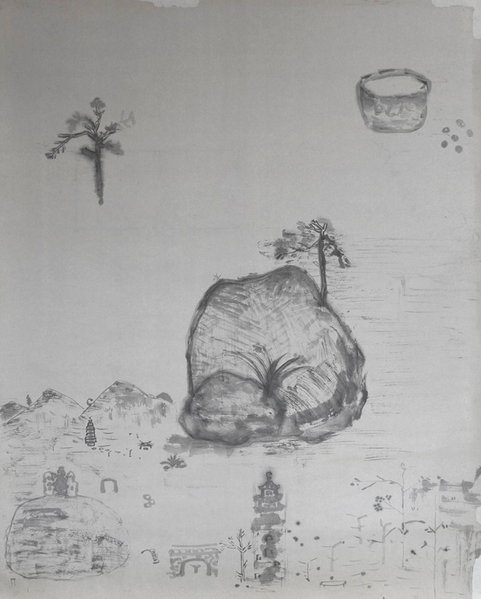 通過漢學家的眼光回望東方藝術文化,乃是黃方啟一以貫之的學術途徑。譬如《大象無形》中,法國漢學家朱利安述論:“在中國,畫家、詩人皆不描繪清楚分明、無稍間斷的特征。實際上,他們的這種狀物方式并不是為了更清楚地展現事物,從而喚起它們的在場;他們在‘有’‘無’之間狀物,把事物畫得既存在又不存在:既在場又缺席,半晴半陰,似晴似陰?!敝炖菜灾赶蚬糯?,對于今人黃方啟卻也同樣成立,其筆下水墨的推演正是在有無之間狀物,黑白通式,隱隱約約,虛虛渺渺。