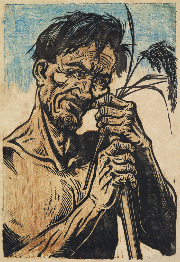 苦笑 李樺 23x15.5cm 套色版畫 1940年 廣東美術館藏