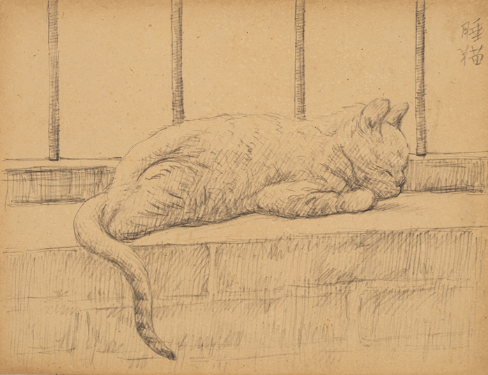 睡貓 胡根天 20.5x26.5cm 紙本鉛筆 20世紀30年代 私人藏