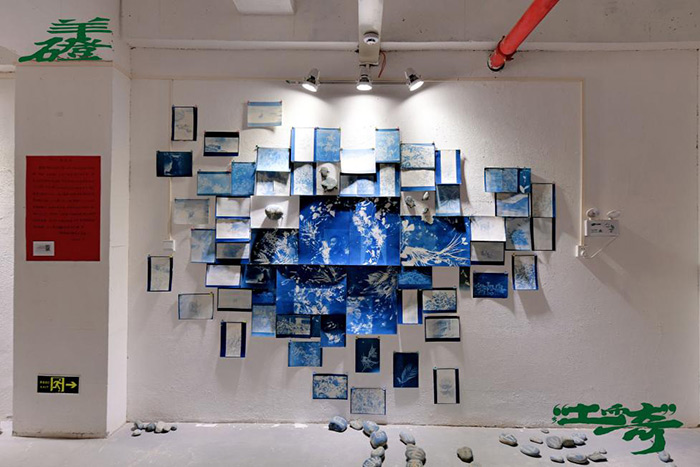 《藍色家園+往日心事誰來猜》莫丹洋藍曬照片、石頭尺寸可變2025年(圖片由桐梓縣羊磴藝術協會提供)