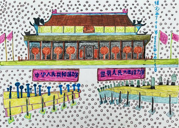 羊磴之所以能在眾多藝術鄉村實踐中脫穎而出和形成如此夸張的時間跨度,除了藝術家們的不斷探索之外,與“土生土長”的本地居民有著密不可分的關系。75歲的程必蘭奶奶作為素人藝術家,多年來的繪畫一直展現出羊磴人特有的鮮活精怪,她于2025年3月份“羊磴在北京”的展覽中來了一趟北京,這幅近乎長達十米的畫作便是以此為契機創作。她用繪畫樸實又可愛的記錄北京之行,“土里土氣”又如此靈動。在本次鄉村藝術課堂環節中,程必蘭奶奶敘述了長卷《羊磴到北京》的創作思路和過程,還有老照片《一家人系列》的作品介紹。與此同時,她的孫子付臣亮作為羊磴藝術協會的秘書長,通過在羊磴的不斷實踐中找到了與自身創作的契合點及實驗場。認為2025年第三屆“土而奇”的創作方法、參與人員范圍都有巨大突破,并將其視為羊磴新起點、新階段。從土壤中滋出嫩芽,到長成參天大樹是需要時間的。