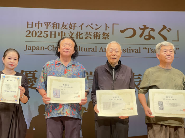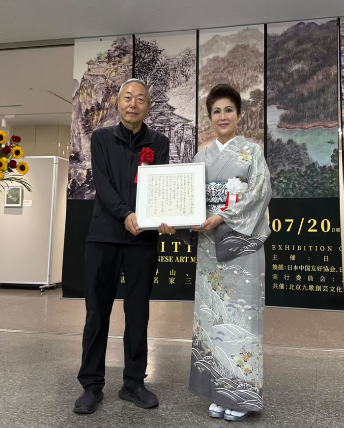 開幕式現場,主辦方日中國際藝術家協會川阪實由貴會長為參展藝術家李翔、王界山、張鵬頒發“國際文化交流貢獻獎”證書,表彰三位藝術家在推動中日藝術對話中的積極作用。同時,展覽還舉行了作品收藏儀式,三位藝術家的代表性作品被日中國際藝術家協會正式收藏,成為中日文化交流的珍貴見證。