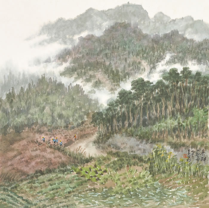 李翔《春耕麗景》宣紙設色 32cmx32cm 2025年-2