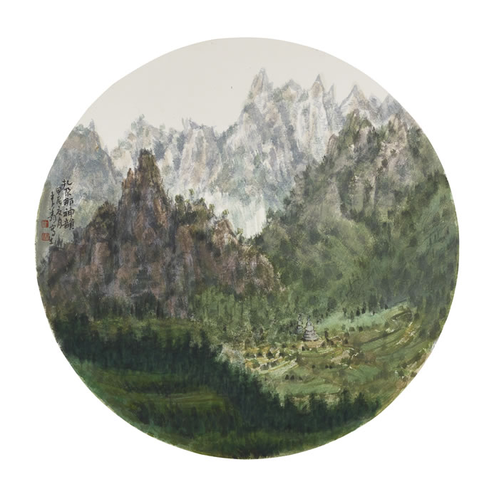 李翔 《扎尕那神韻》宣紙設色 直徑42cm 2024年