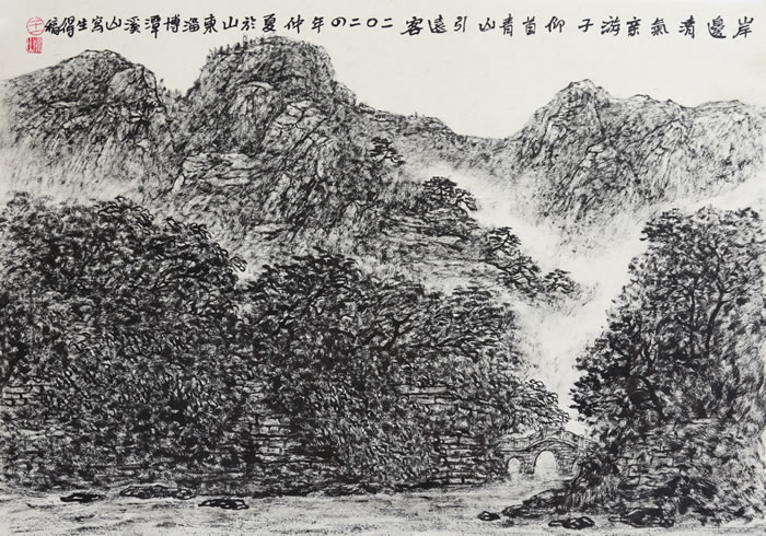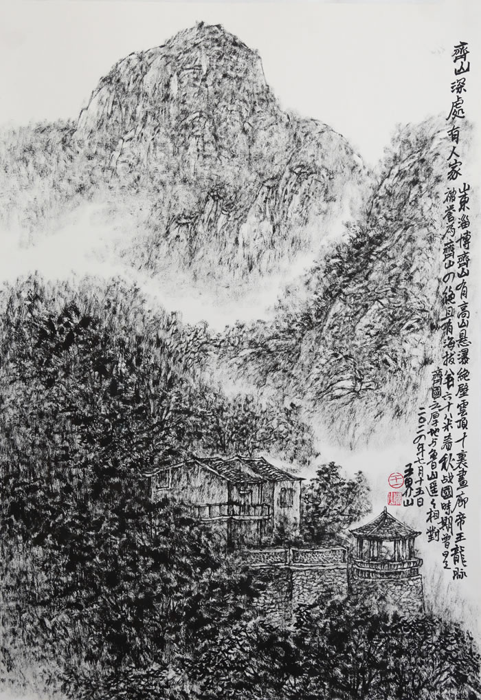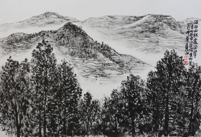 滿目山林盡染翠 王界山 45X65cm 焦墨畫 2025年
