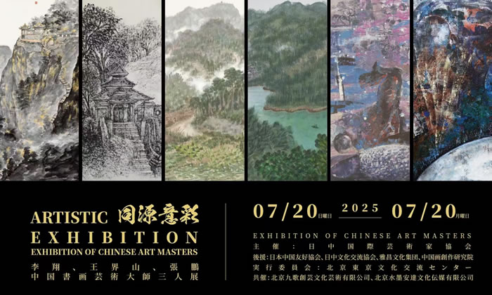 2025年7月20日下午,“同源意彩——李翔、王界山、張鵬中國畫家三人作品聯展”在日本東京淺草公會堂美術館啟幕。本次展覽由日中國際藝術家協會主辦,日本中國友好協會、日中文化交流協會、雅昌文化集團、中國畫創作研究院提供支持,北京東京文化交流中心承辦,展覽旨在以書畫為橋,搭建起中日文化交流的新平臺。