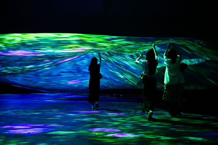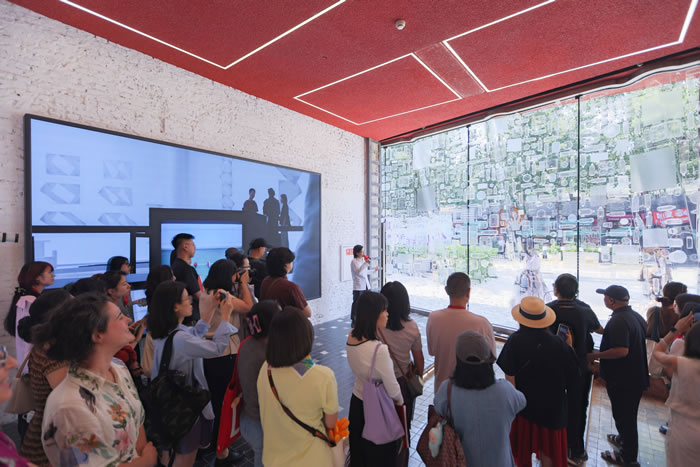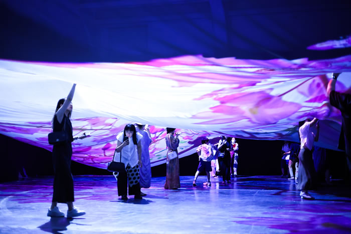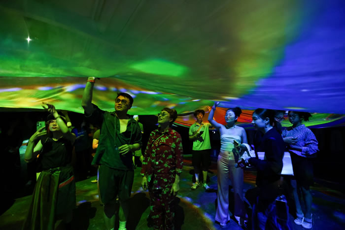 展廳現場觀眾與幕布進行互動,圖片由UCCA尤倫斯當代藝術中心提供
