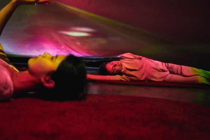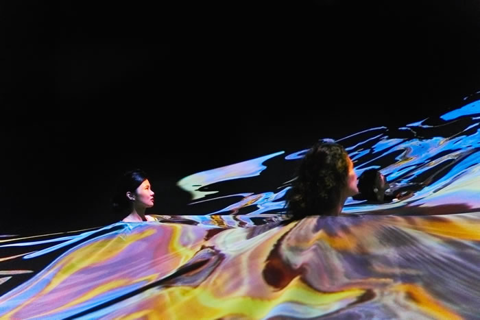 作為UCCA自2007年成立以來物理尺寸最大的委任創作,這件占地1,800平方米的作品以輕薄如“皮膚”般的織物懸垂于整個空間,一段循環視頻投映其上,營造出了一個隱喻性的身體場域——承載著藝術家藝術愿景,并由美術館與觀眾共同構成的“集體之軀”。觀眾在此被邀請觸摸作品并參與其中,隨著光影在織物表面流動,裝置與觀者之間的感知距離逐漸模糊——他們一同成為這個“龐大軀體”中自然律動的有機組成。在這里,手、腳、面容、植物、山野、放大的細胞等意象貫穿于流動在幕布上的視頻中,突破畫面的限制,以開放的姿態邀請觀眾主動參與而非被動觀看。置身其間,觀眾的身體和感知會被無意識的全方位喚醒,仿佛化做其中的一株植物、一抹流彩,抵達歡愉自在的平行宇宙。