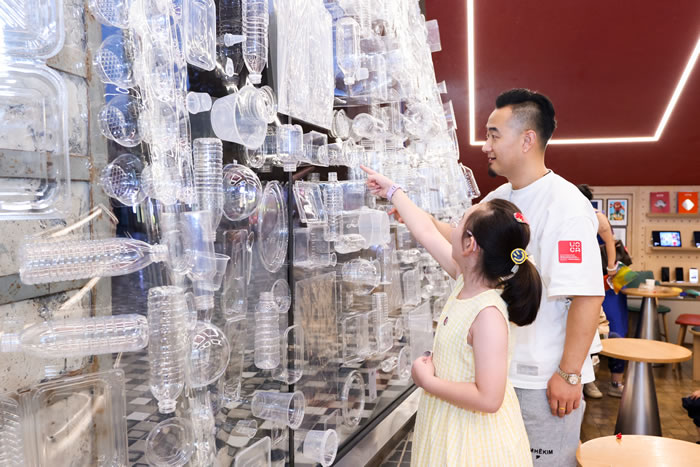 值得一提的是,作品《天真的收藏》沿UCCA臨街的標志性曲面玻璃幕墻延展呈現,成為藝術家一項長期項目的北京限定版本。該項目收集無標記、批量生產的透明塑料包裝材料——它們被藝術家稱為“即時鉆石”。這些廢棄物被重組為一件精巧的雕塑裝置,與展覽“喚醒感知、消除固有邊界”的核心理念相呼應,邀請觀眾重新思考何為值得我們關注與呵護之物。盡管這些最初為保存與保護物品而設計的塑料終將淪為廢棄物,在這里,它們卻重新被賦予了價值——重獲“天真”之名,提醒我們即便在最短暫微小的時刻,也能發現美和意義的存在。
