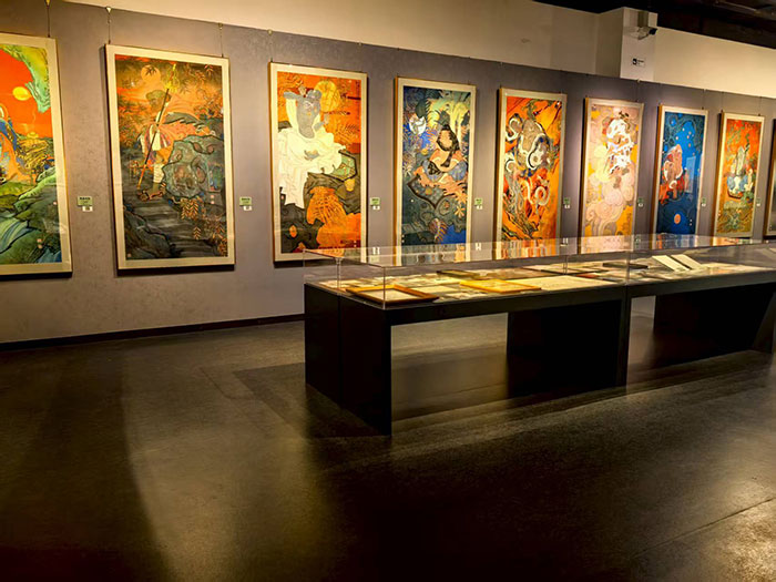 本次展覽集中展示歸僑藝術家寶松自1993年赴美以來三十多年的藝術探索與創作成果,呈現其在中西美學融合方面的獨特表達,作品類型包含工筆重彩、彩墨、水墨、油畫等共計95幅。