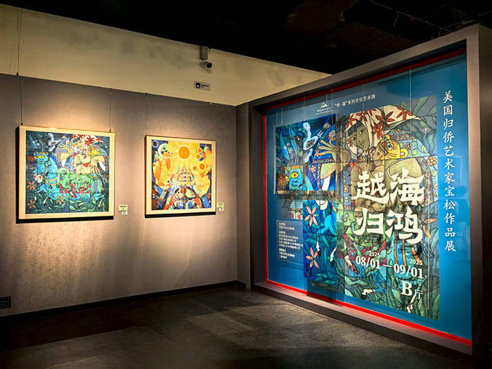 8月1日下午,由中國華僑歷史博物館主辦的“越海歸鴻——美國歸僑藝術家寶松作品展”在僑博開幕。