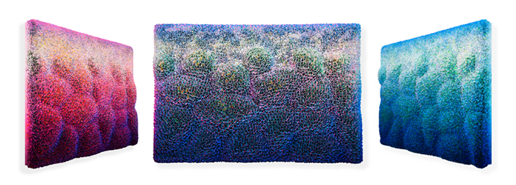 藝術家莊紅藝以原本柔軟的宣紙堆疊出絢爛的色彩花海,他巧妙運用噴涂技法,讓觀者在不同角度能領略到截然不同的色彩世界。當人們觀看和解讀世界時,總會帶著特定的視角,而莊紅藝用最直接的方式,讓我們真切感受到不同視角下世界的千差萬別。