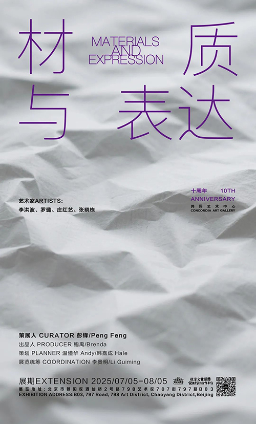 共同藝術中心于2025年7月12日推出“材質與表達”十周年特展。本次展覽由彭鋒策展,呈現李洪波、羅璐、莊紅藝、張曉棟四位藝術家以紙為媒材的作品。自2015創立之初,共同藝術中心便始終聚焦藝術創作中的材質語言。十年前,共同藝術中心以開館展 “紙是” 開啟對紙材質的深度探索,展出了一批極具先鋒性的紙藝作品;十年后初心如磐,再度以紙為核心媒介,延續材質與藝術表達之間的深層對話關系。展覽持續至8月5日。