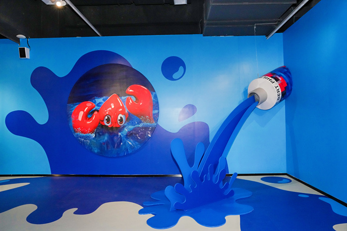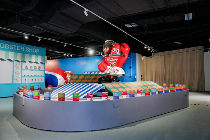 另一件專門為本次展覽創作的作品《龍蝦工廠》,是一則關于消費社會的寓言。傳送帶運送著包裝鮮艷、排列整齊的龍蝦罐頭,機械地、永不停歇地向前滾動著,正如消費時代的縮影。考爾伯特道出創作的本意:“以超現實方式批判現代社會對生產和消費的過度追求?!?/strong>當觀眾逛完展覽,挑選并購買龍蝦限量周邊衍生品時,同時也不經意間完成了這件消費行為藝術的最后一環。