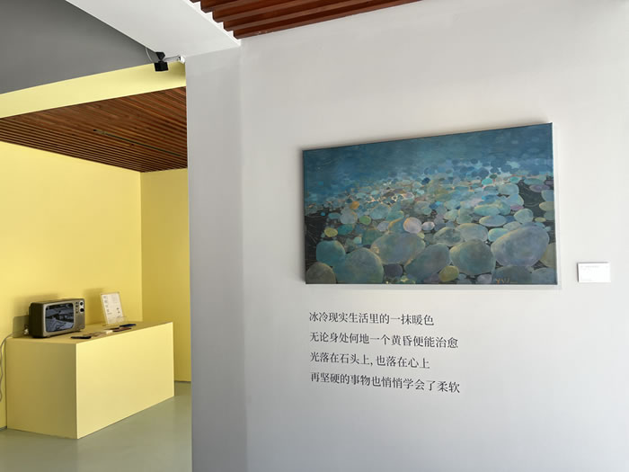 東廂房作為第一章節,故事從這里緩緩展開——文字的流淌、印章的留痕,與繪畫跳躍的色彩一同放慢體感的節拍,像是輕輕地撥動鐘表指針,牽引觀者回到那些被陪伴與嬉戲填滿的時光。而西廂房作為第二章節,顯示出現實世界的節奏與其中的矛盾拉扯,進一步引出關于時間體驗與自我重塑的直接提問。