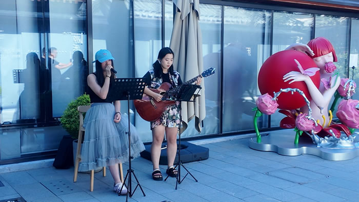 當共創時間裝置在展墻拼合成斑斕的時間圖譜,北京獨立“水牛樂隊”以清新吉他旋律點亮空間。