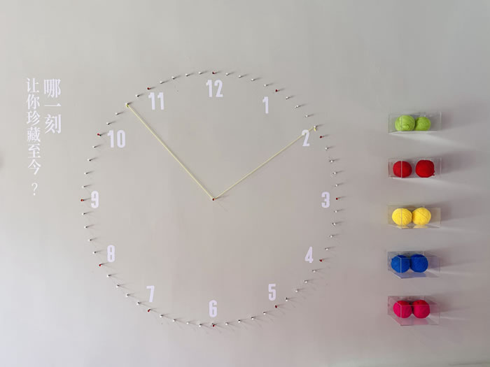 從觀展到融入,現場嘉賓共同參與到時鐘裝置的藝術共創中,以彩色絲線編制藝術時鐘,用藝術創意描摹時間的輪廓。