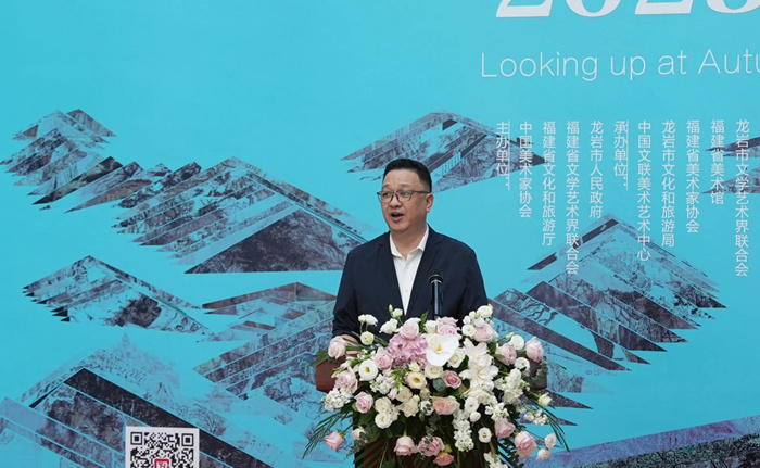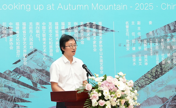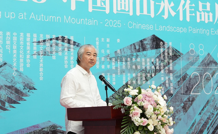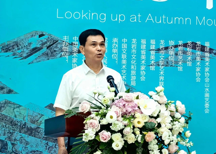 龍巖市人大常委會副主任張子平宣布“仰望秋岳——2025·中國畫山水作品展”開幕。龍巖市文聯黨組書記、主席王永忠主持展覽開幕式活動。