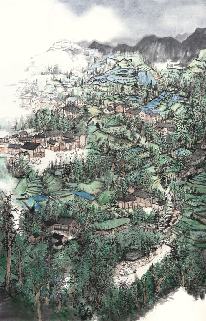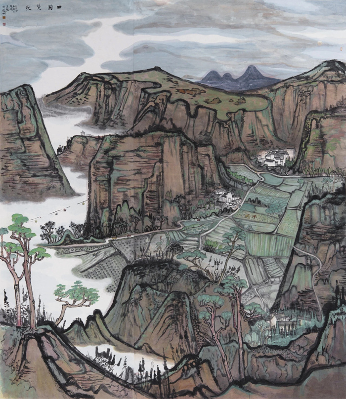 展覽作品分為國之風神、家山圖境、造化心源、城鄉交響、閩西勝概五個版塊?!皣L神”描繪了祖國各地四時萬物的不同風光;“家山圖境”將人人心中難以忘卻的鄉愁寄情于紙;“造化心源”是藝術家深入觀察,觀物觀我,中得心源的理想幻化;“城鄉交響”展現了當代中國飛速城市化進程帶來的山水景觀新圖景;“閩西勝概”呈現了展覽所在地龍巖的獨特風采及生生不息的藝術力量。