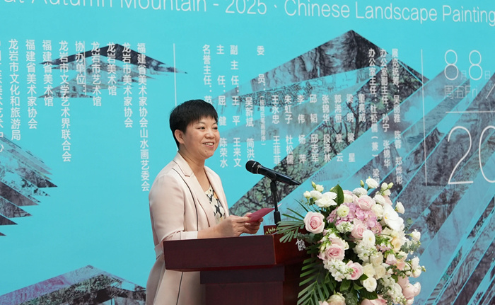 龍巖市文化和旅游局局長林麗鳳介紹,龍巖是全國唯一一座以“龍”命名的地級市。這里有英雄的革命基因、神奇的永定土樓、深厚的客家文化、宜人的丹霞溫泉、絢麗的生態山水,還有古樸的民俗風情和誘人的舌尖美味,客家文化、紅色文化、生態文化相互融合,交相輝映,組成了“清新福建五彩龍巖”的美麗畫卷?!把鐾镌馈?025·中國畫山水作品展”中,來自全國各地的藝術家們傳遞了傳統文化與時代精神碰撞交融的強大力量。