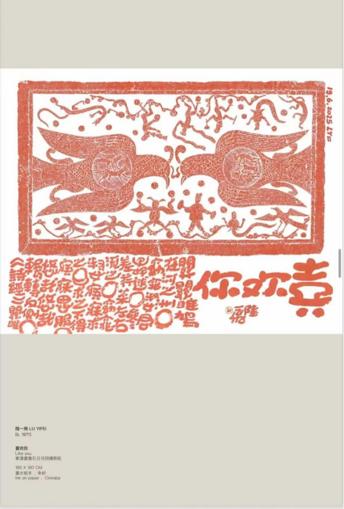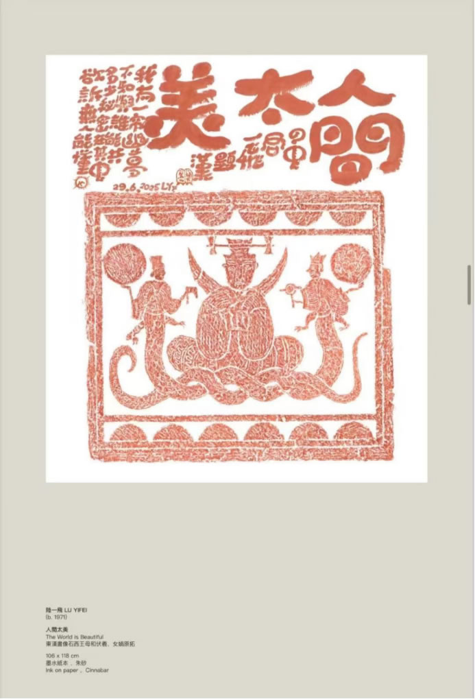 陸?飛以極具個?特?的“?寫意書法”與漢畫像原?原拓中沉淀千年的大漢線條共舞。藝術家探索中華?明的當代表達,將其藝術觸及更廣泛的當代受眾,強調藝術不僅是美的創造,更是賦予當代?活積極意義的媒介。