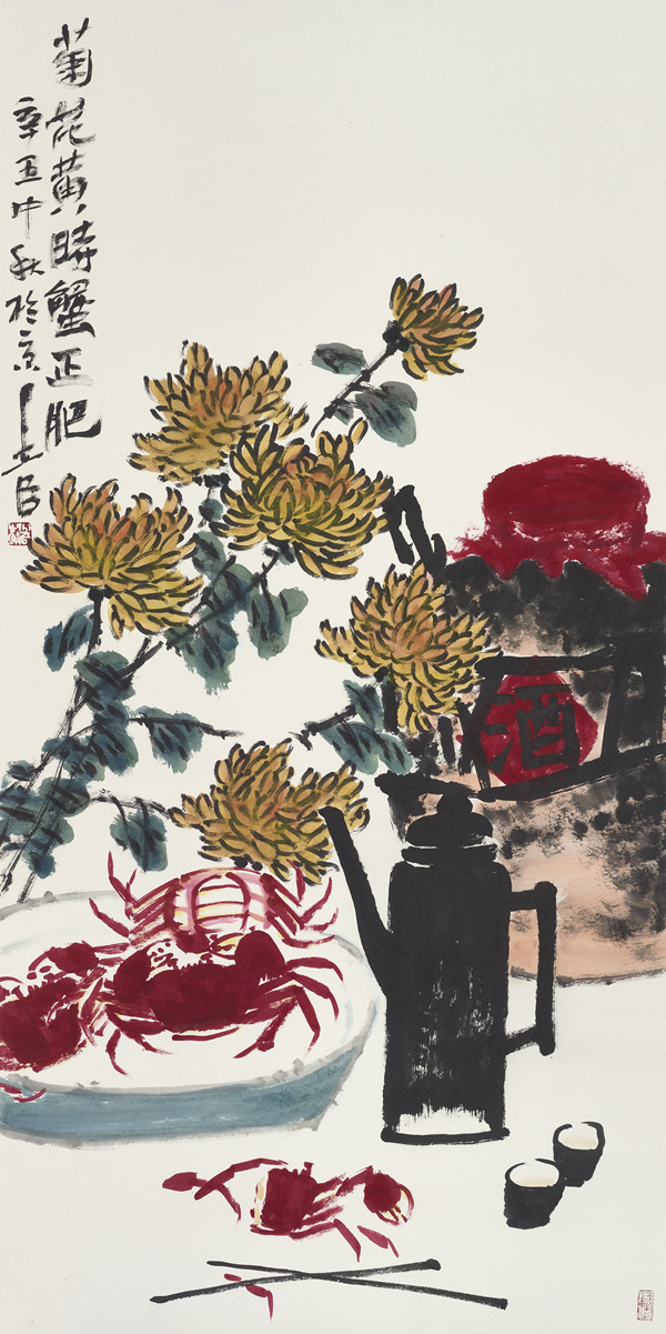 邢少臣 菊花黃時蟹正肥 138x68cm