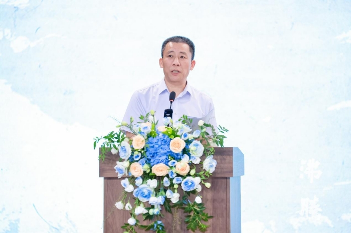 紀云飛代表浙江省博物館,向蒞臨現場的各位嘉賓致以最誠摯的歡迎,并感謝趙冷月先生家屬的信任與支持。他表示,趙冷月先生是二十世紀中國書法史上一位極具革新精神的大家。他以深厚的學養、不懈的探索和獨特的藝術風格,為書法的現代性轉型提供了一種極具啟發性的路徑,再次印證了傳統可以在與時代對話中煥發新生。本次展覽不僅是對趙冷月藝術成就的回顧,更是一次關于“傳統如何再生”的生動對話。趙冷月以“暮年變法”打破陳規,融碑帖于一爐,其作品既存古意,又顯生拙之趣,堪稱傳統書法向現代轉型的橋梁。他不僅是書法藝術的傳承者,更是新書學思想的啟蒙者——其理論構建與創作實踐,為后世書家提供了“守正不泥古,創新不逾矩”的范本。