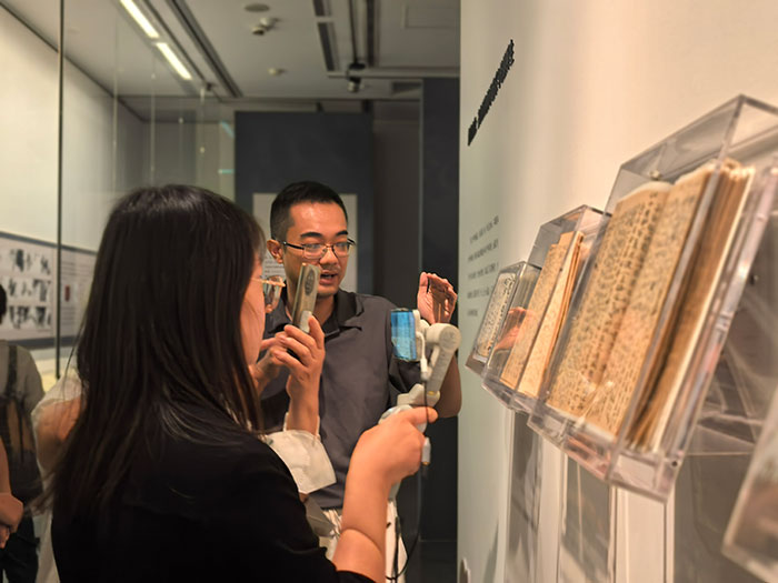 為生動展現齊白石的師承脈絡,展覽增設了“齊白石的師承譜系與筆墨再生”互動裝置,觀眾可近距離閱讀白石老人手稿真跡,品讀其對前人的評點,也可以觸摸翻轉探索其藝術淵源的譜系關系圖,直觀感受名家之間的影響與共鳴。