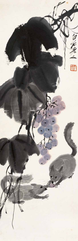 葡萄松鼠 齊白石 無年款 88.5cm×29cm 紙本設色 北京畫院藏
