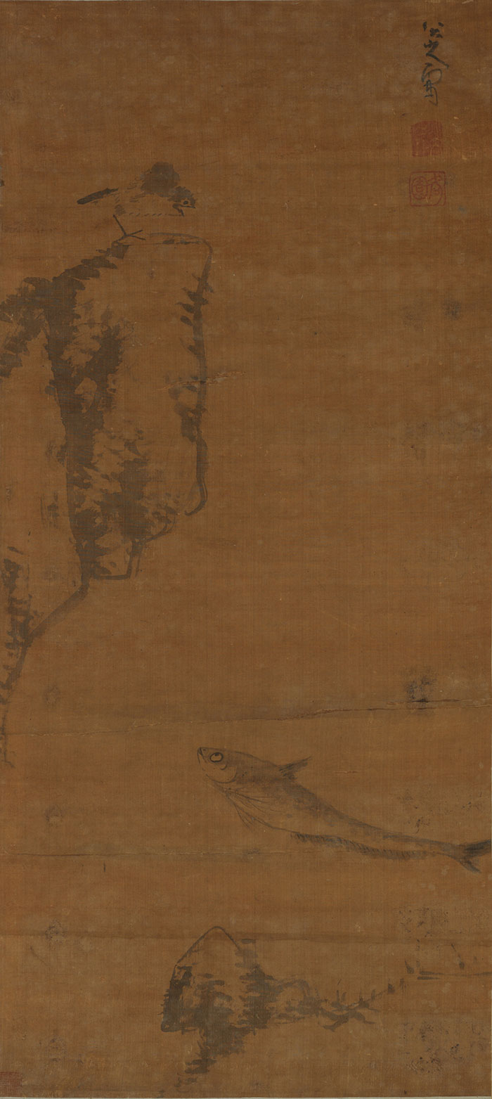 鳴鳥游魚圖 八大山人 清 108cm×48.5cm 紙本墨筆 天津博物館藏