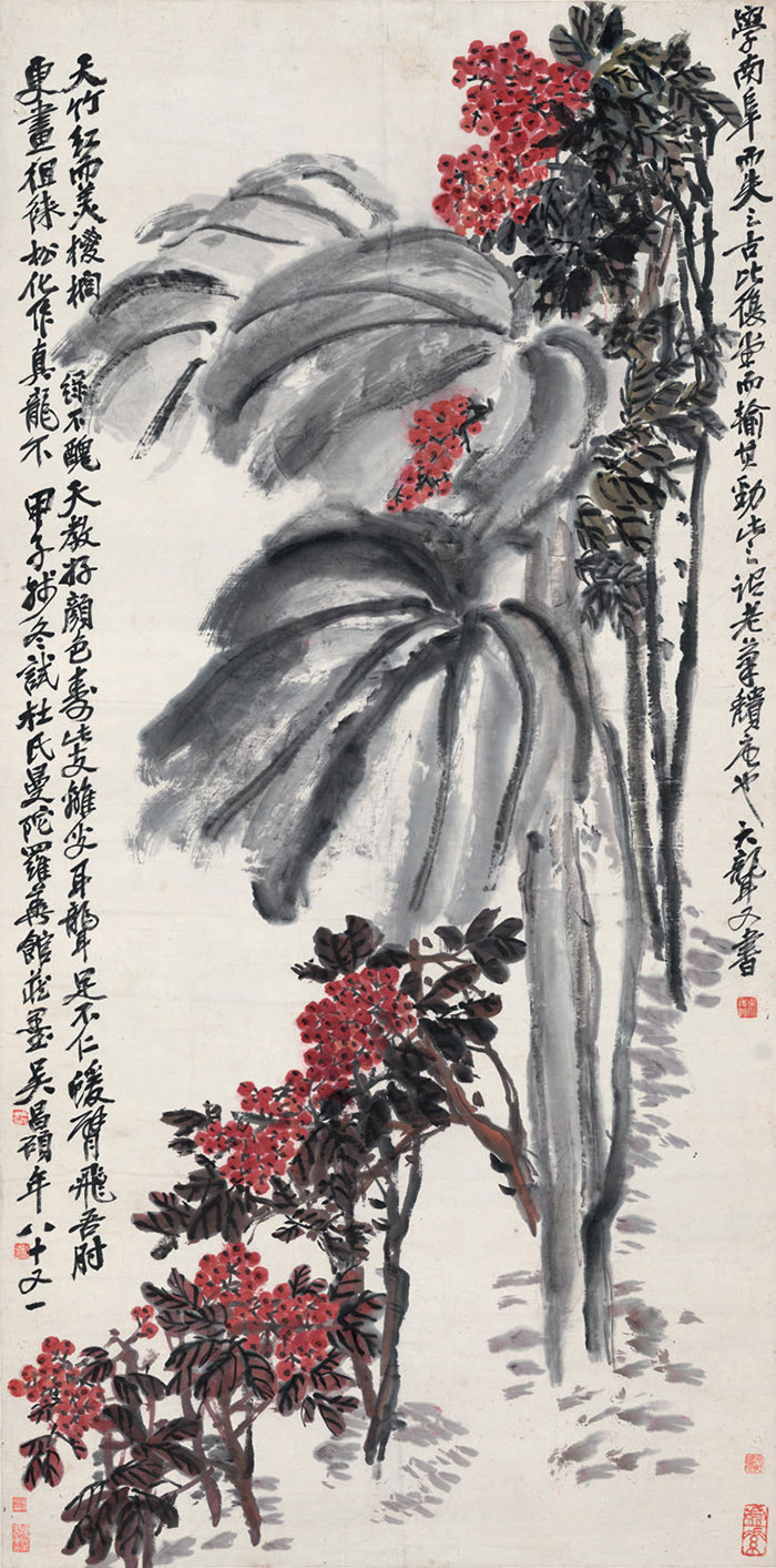 天竹棕櫚 吳昌碩 1919年 138cm×68.5cm 紙本設色 西泠印社藏