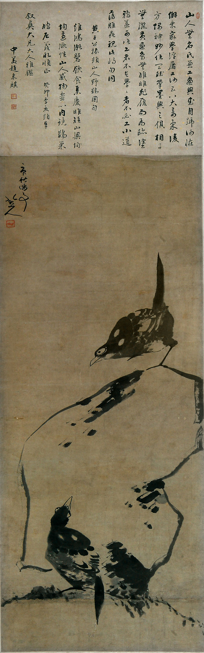 雙鵲大石圖 八大山人 1960年 121cm×49cm 紙本墨筆 八大山人紀念館藏