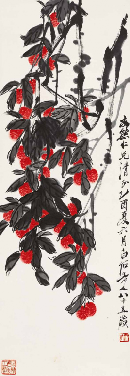 荔枝 齊白石 1945年 96.5cm×33.5cm 紙本設色 北京畫院藏