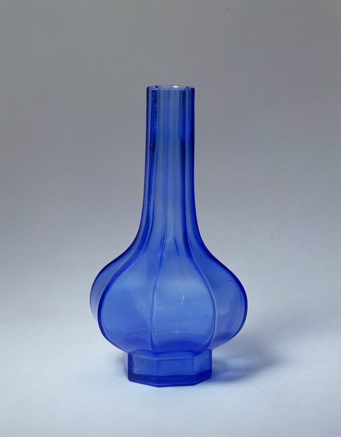 故宮博物院藏雍正款藍色玻璃八棱瓶