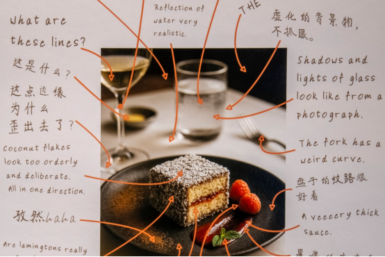 《眨眼間》通過 AI生成了世界上不同國家特色美食的圖片,讓10歲左右的兒童對圖片的細節進行評論,觀眾通過圖像與圖像上的評論文字可以了解,在數字化時代中孩子們對AI物化的世界的新的認知方式。