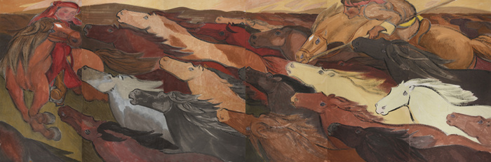 《牧馬圖》水墨紙本設色 145X547cm 2017年
