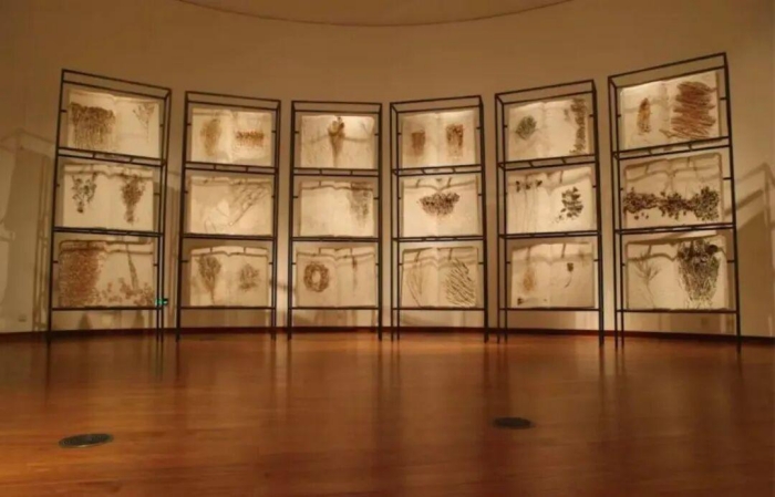施慧《本草綱目》 600x48x360cm 鍍鋅鐵絲網、紙漿、干枯植物 2009年