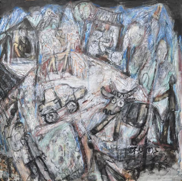 辜毅 《不如早還鄉》 紙本彩墨 61x61cm 2025年