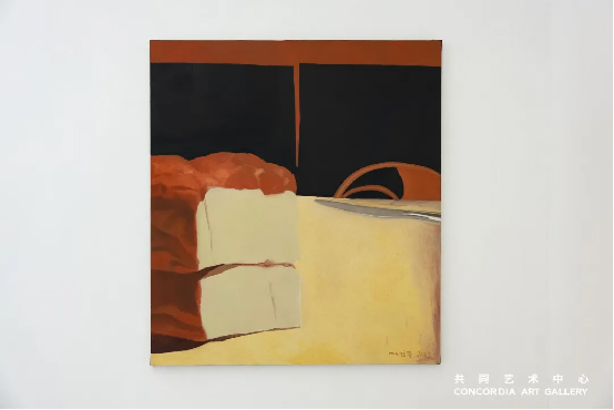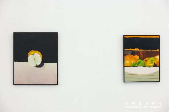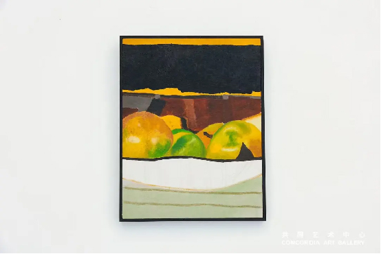 其創作核心在于“切割”的哲學——不僅是形態的剖開,更是視覺認知的打開。例如,他將水果切開,以非常規的斜面呈現內在剖面,在銳利的形制與柔和的質感之間建立對話。這種切割行為催生了多元的空間層次:畫面雖趨扁平,但每個色塊通過精準的色彩進退與并置,在有限深度內拓展出豐富的空間幻覺。