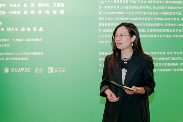 湖北天逸集團有限公司黨委副書記、執行總經理許小鋒對到場嘉賓表示熱烈歡迎。他指出:“‘循環·生息志’的展覽主題與梓有集‘自然力與生命力’的核心理念高度契合,感謝湖北美術學院的大力支持。本次展覽匯聚了12位藝術家的作品,將抽象哲思具象呈現,是輕美學理念與藝術創作的深度共鳴,旨在激發公眾藝術熱愛,傳遞循環生息的理念?!?/p>