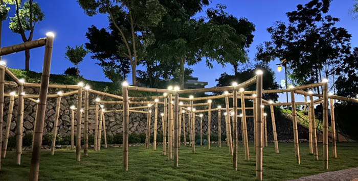 安曉彤,《光棲竹境》,尺寸可變,綜合材料(竹竿、燈等),2025年