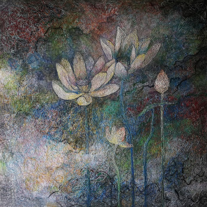 李薇,《錦瑟年華》,2022,宋錦、真絲綃,1m x 3m
