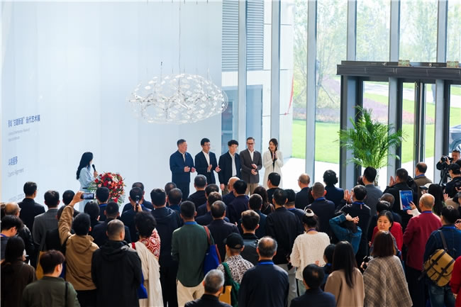 晉城城市體驗中心開館暨2025晉城“古建新語”當代藝術展開幕現場。各方代表(左起)晉城合為規劃設計集團有限公司黨委書記、董事長高青定,晉城市政府黨組成員、副市長楊曉雷,中國城市規劃協會歷史文化保護與利用工作委員會創辦人李錦生,UCCA館長兼CEO田霏宇,UCCA Lab總經理吳奕萱