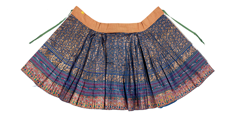 藍色纏枝四季花卉紋織金妝花緞馬面裙 明 長88厘米 腰圍104厘米 山東博物館藏(圖片由清華大學美術學院提供)