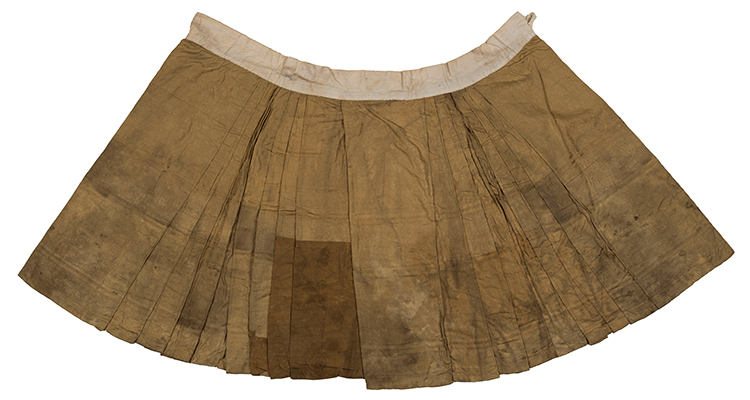 黃褐色綢地織靈芝竹葉紋馬面裙 明 長83厘米 寬123厘米 上饒市博物館藏 2016年江西省上饒市廣信區白嶺明墓出土
